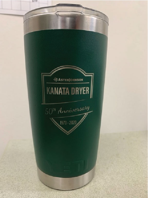 At the end of 2020, Kanata Dryer celebrated it’s 50 Anniversary. As part of the celebration, all associates were awarded 20 oz. stainless steel tumblers for either hot or cold beverages, and a way to help reduce our need for single use cups.