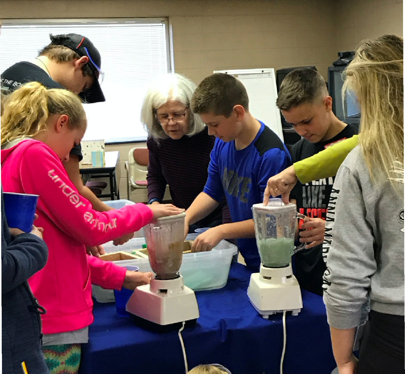 In 2017, Kim Schiedermaver from Arnold Grummer and a Discovery Center Staff member came onsite and hosted a demonstration on papermaking with the children.